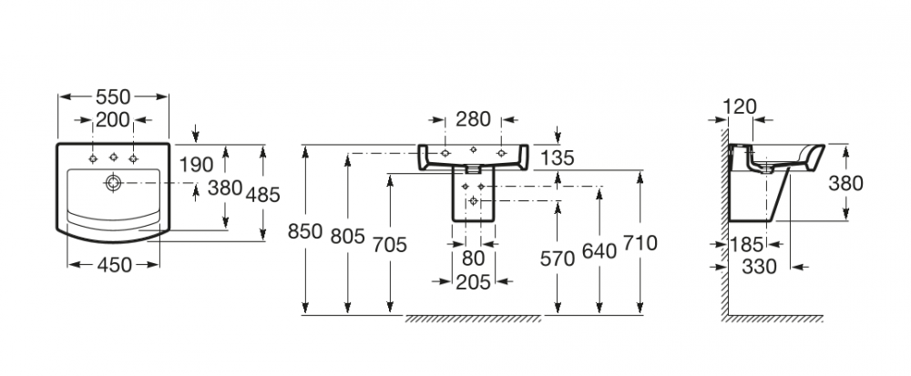 1) Раковина для ванной подвесная Roca Hall 55х48.5 с одним отверстием под смеситель керамика белая