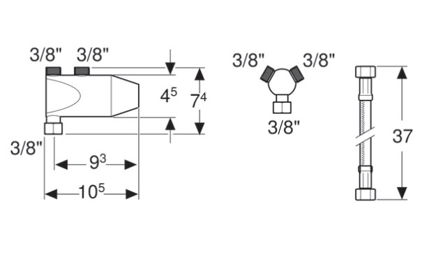 - Для монтажа на угловые запорные вентили 3/8"