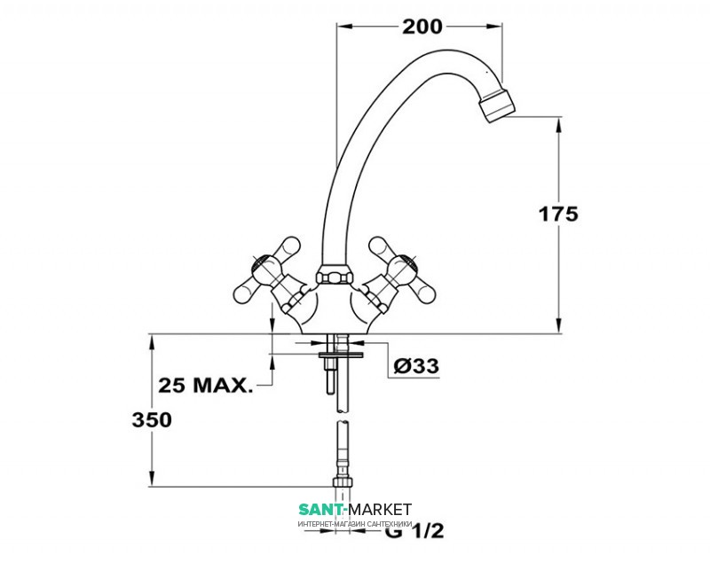 Смеситель для кухни Mofem Treff двухвентильный ретростиль 140-0019-30