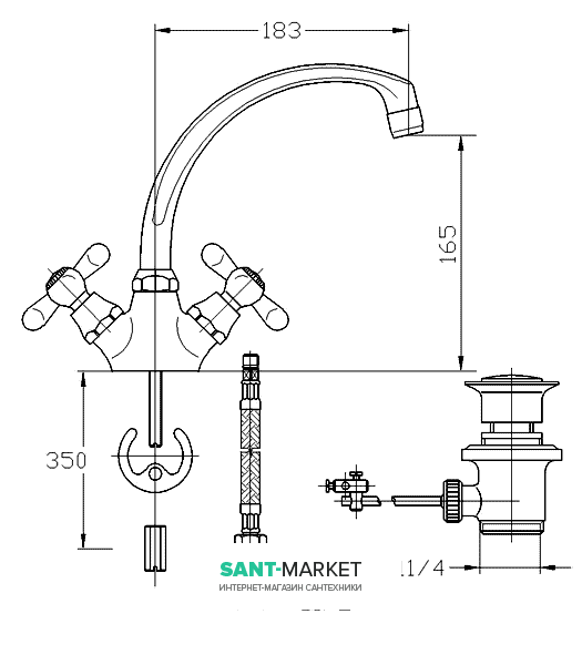 Смеситель для кухни Mofem Treff двухвентильный ретростиль 140-0019-01