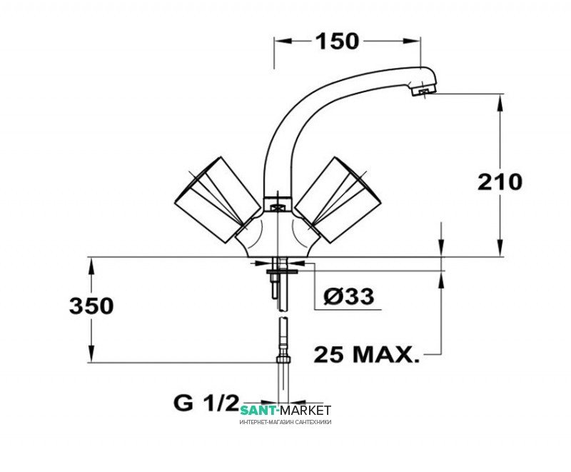 Смеситель для кухни Mofem Nova двухвентильный ретростиль 140-0006-33