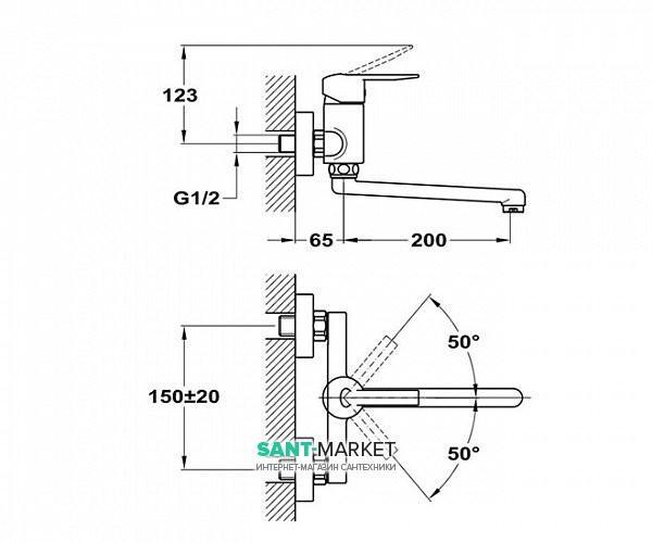 - Длина излива - 200 мм