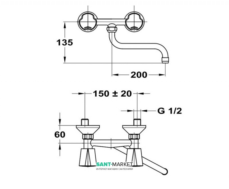 Смеситель для кухни Mofem Nova двухвентильный настенный ретростиль 142-0046-31
