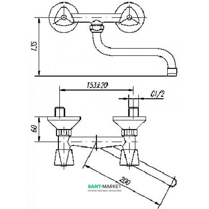 - Излив: длина 200 мм