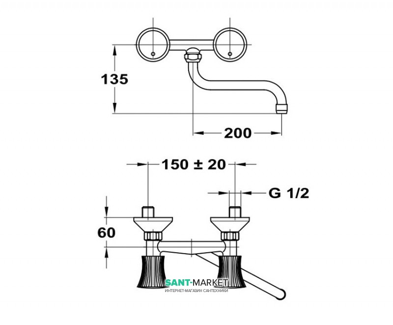 Смеситель для кухни Mofem Spectrum двухвентильный настенный 142-0037-00