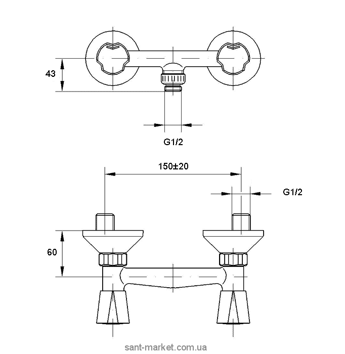 Смеситель для душа настенный двухвентильный Mofem коллекция Nova с душевым набором хром 143-0014-36