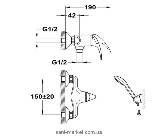 Смеситель для душа настенный однорычажный Mofem коллекция Junior с душевым набором хром 153-0009-00