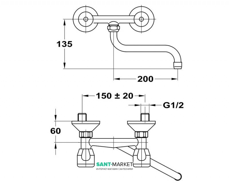 Смеситель для кухни Mofem Evrostar двухвентильный настенный ретростиль 142-0148-32
