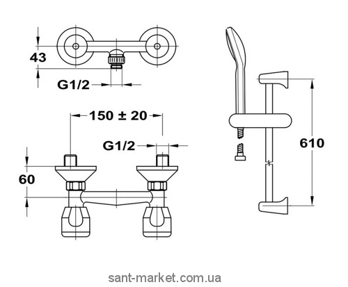 Смеситель для душа настенный двухвентильный Mofem Evrosztar NOVA с душевым набором хром 143-0115-00