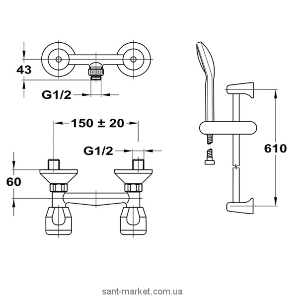 Стандартное крепление с декоративными шайбами. С резиновыми кран-буксами, обеспечивающими более точную регулировку, и снижающими эффект большого давления, фильтр снижает шум от трения воды по трубам. Материал маховиков - пластик. Смеситель укомплектован противонакипной однорежимной лейкой Бэзик, полутораметровым душевым шлангом и настенным держателем для душевой лейки.
