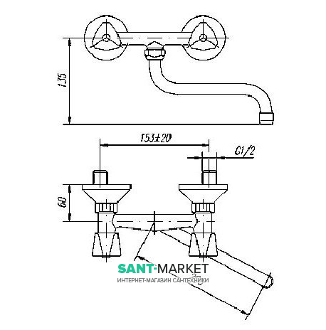 Смеситель для кухни Mofem Metal Plus двухвентильный настенный ретростиль 142-0023-00
