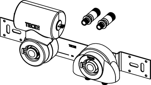 монтажный блок TECEflex с гигиеническим боксом TECE с адаптером для подключения TECEflex для подключения к горячей воде и двойной стеновой панелью U с изоляционным блоком TECE для подключения к холодной воде