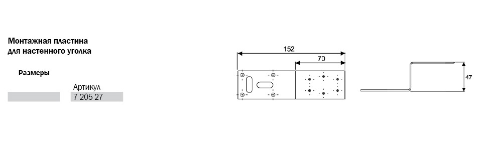 1) Монтажная пластина для настенного уголка Tece TECEflex 152/70 мм оцинкованная сталь
