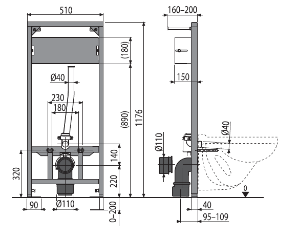 A114S/1200 монтажная рама для подвесного унитаза и сенсорного устройства