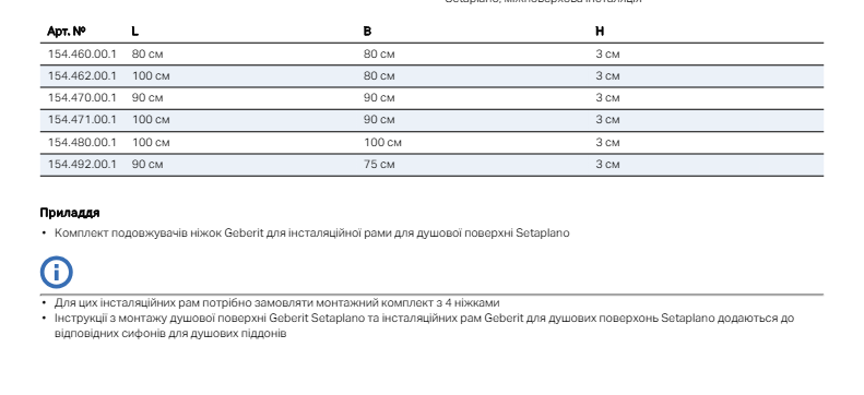 - Для монтажа душевых поверхностей Geberit Setaplano внутри зданий