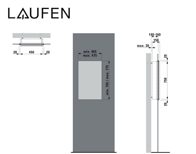Монтажная рама для зеркального шкафчика Laufen Frame 25 45 см алюминий H4083809000001