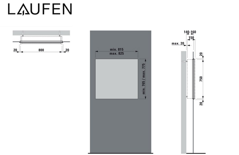 Монтажная рама для зеркального шкафчика Laufen Frame 25 80 см алюминий H4085809000001