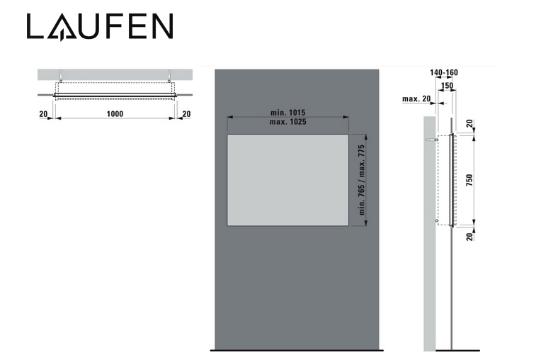 Монтажная рама для зеркального шкафчика Laufen Frame 25 100 см алюминий H4086809000001