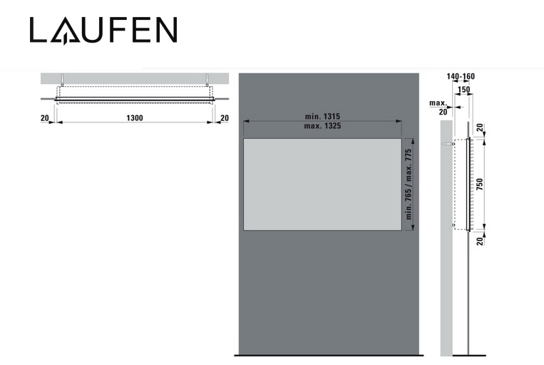 Монтажная рама для зеркального шкафчика Laufen Frame 25 130 см алюминий H4087809000001