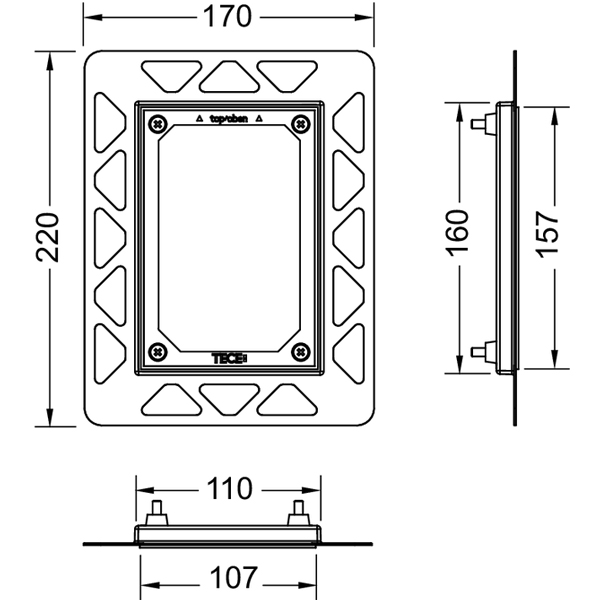 1) Монтажная рамка для установки электронных панелей Tece TECEfilo на уровне стены