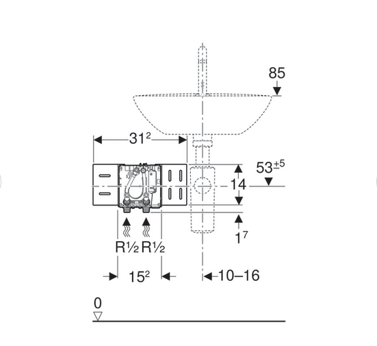 Монтажный комплект для установки смесителя Geberit на раковину с функциональным блоком для скрытого монтажа