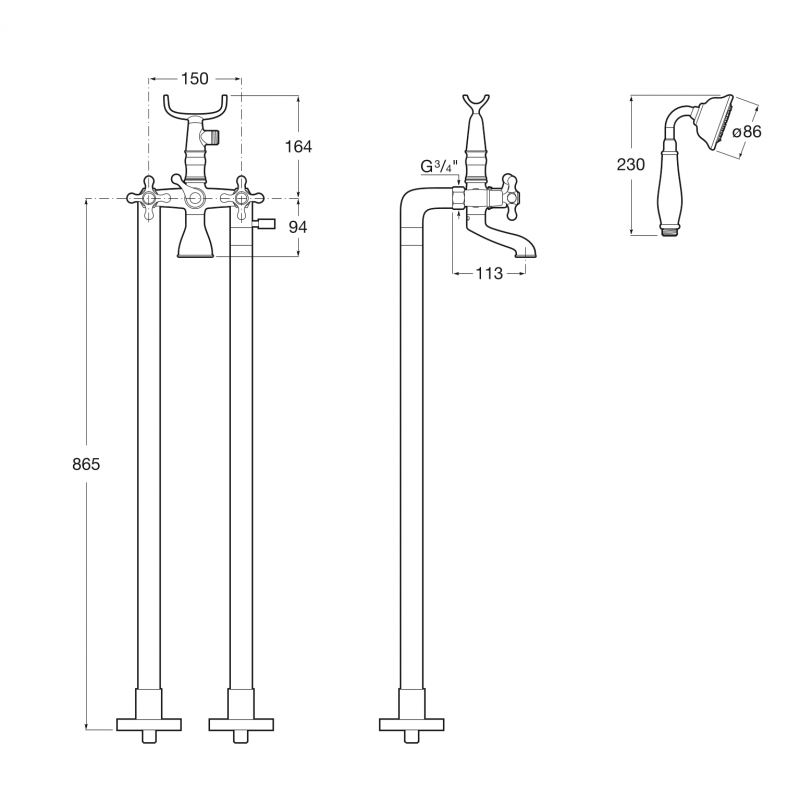 Roca Carmen хром (A5A274BC00) - это двухвентильный смеситель для душа с изливом для ванны и ручной душевой лейкой. Набор расположен на двух опорах, которые монтируют к полу рядом с ванной.
