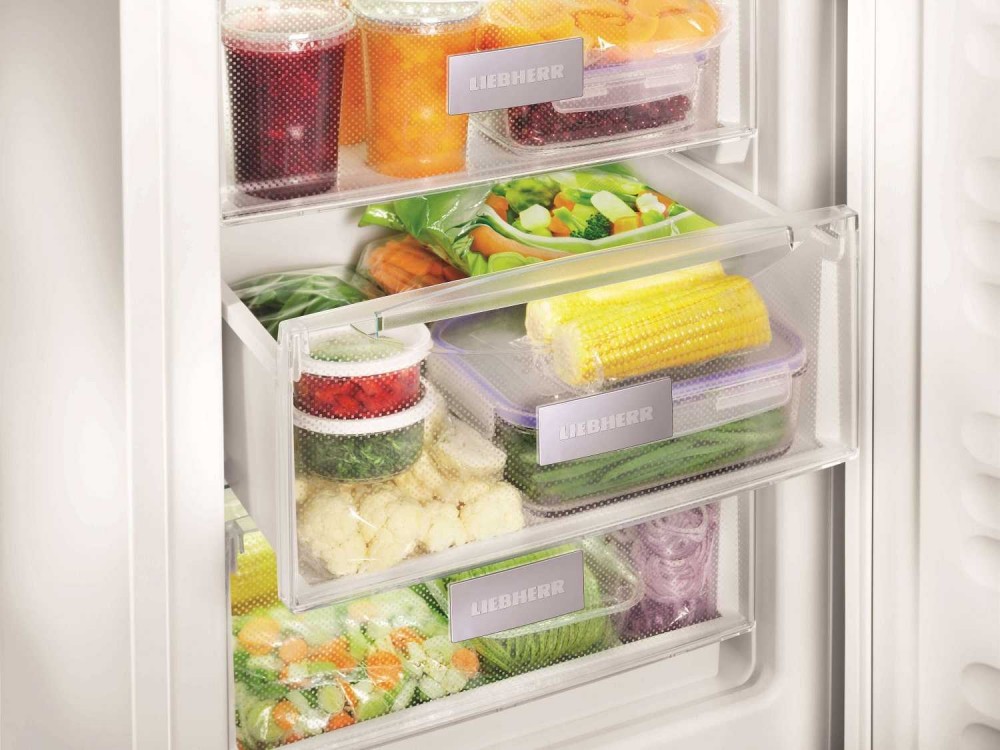 Во всех морозильниках с технологией NoFrost и SmartFrost выдвижные контейнеры и прозрачные полки извлекаются легко и удобно. Это позволяет использовать все преимущества практичной системы VarioSpace, с которой в морозильной камере будет достаточно места для размещения замороженных продуктов большого размера.