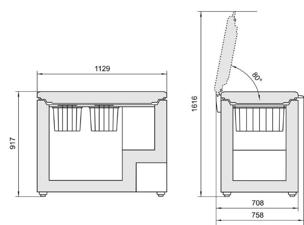 Для большей надежности корпус морозильных ларей изготовлен монолитно. Крышка ларя также выполнена из глубокотянутого стального листа. Стальные детали защищены специальным порошковым покрытием. Это гарантирует высокую прочность и предотвращает коррозию.