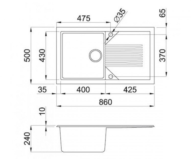 1) Мойка для кухни Adamant Novak 860х500 мм искусственный гранит авена
