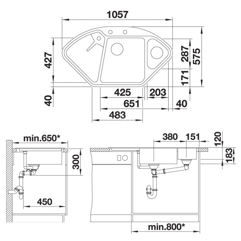 Мойка для кухни Blanco DELTA II-F SILGRANIT клапан-автомат темная скала 523671