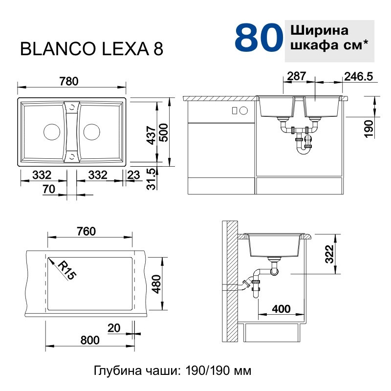 1) Мойка для кухни Blanco Lexa 8 врезная SILGRANIT PuraDur®