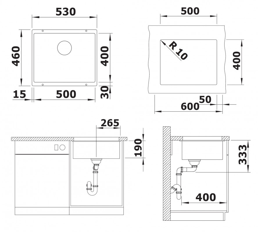 Мойка для кухни Blanco Rotan 500-U 53х46 см SILGRANIT PuraDur® вулканический серый 527329