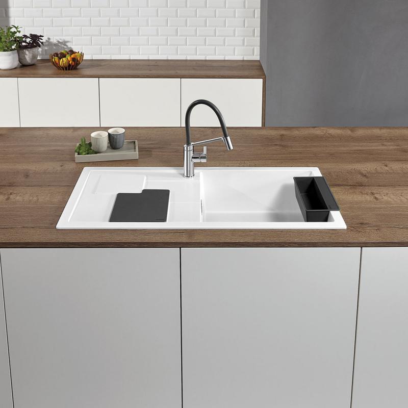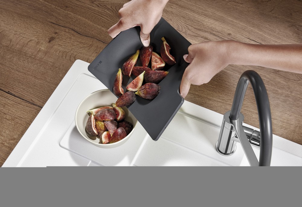 - Рекомендованный смеситель: BLANCO VIU-S с гибким цветным изливом для гармоничного сочетания с аксессуарами