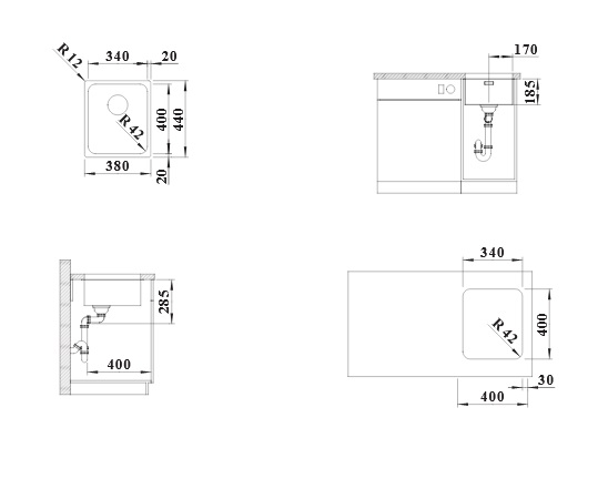 Мойка для кухни Blanco Solis 340-U 38х44 см под столешницу нержавеющая сталь 526115