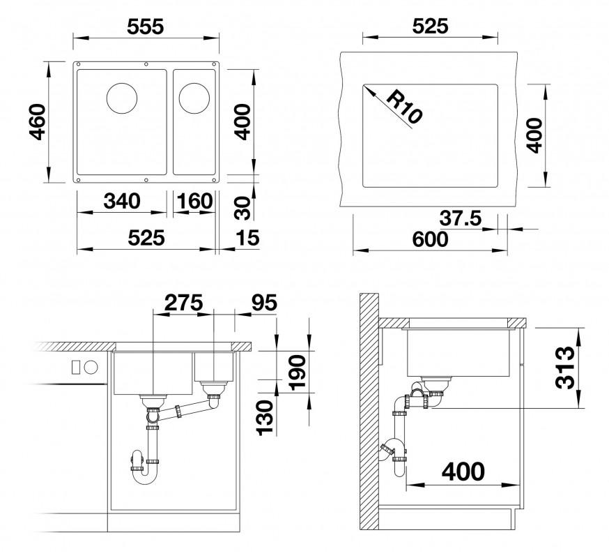 Мойка для кухни Blanco Subline 340/160-U 55,5х46 см SILGRANIT PuraDur® вулканический серый 527346