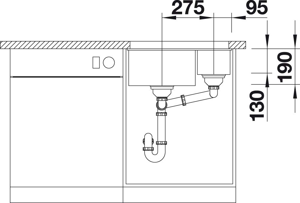 1) Мойка для кухни Blanco Subline 340/160-U 55.5х46 см SILGRANIT® PuraDur® черный