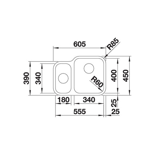 1) Мойка для кухни Blanco Supra 340/180-U нержавеющая сталь полированная