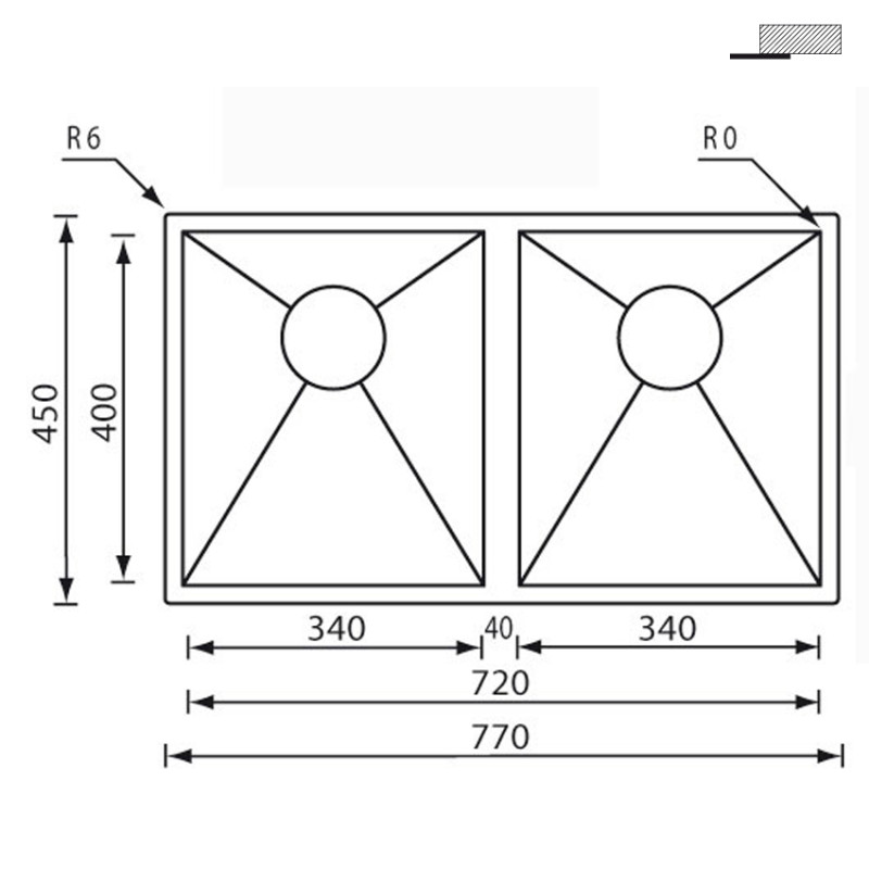 Мойка для кухни CM Filoquadra 77Х45 см Sottotop двойная нержавеющая сталь