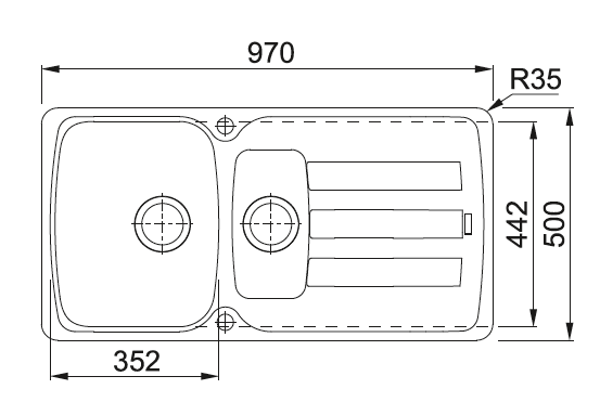 Размеры мойки 970х500 мм