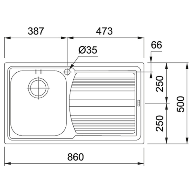 Врезная прямоугольная кухонная мойка Franke Logica line LLX 611-79 (101.0381.809) декор из нержавеющей стали с одной чашей и крылом слева.