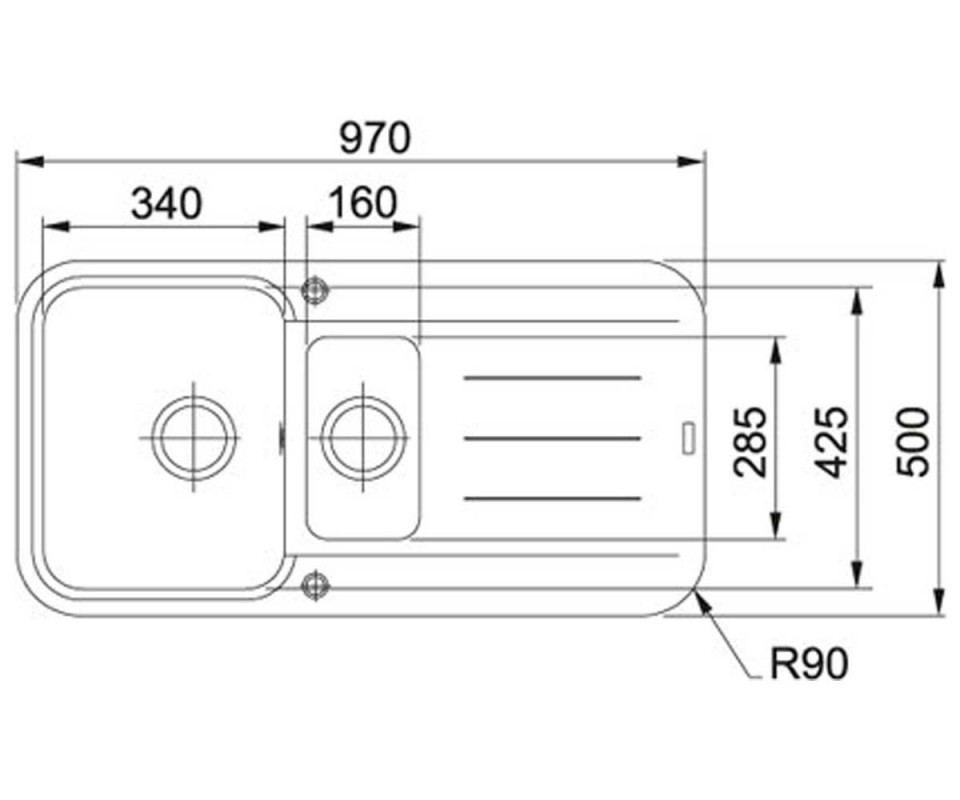 Врезная прямоугольная кухонная мойка Franke Pebel PBG 651 (114.0306.747) миндаль из фрагранита, оборотная с двумя чашами и крылом.