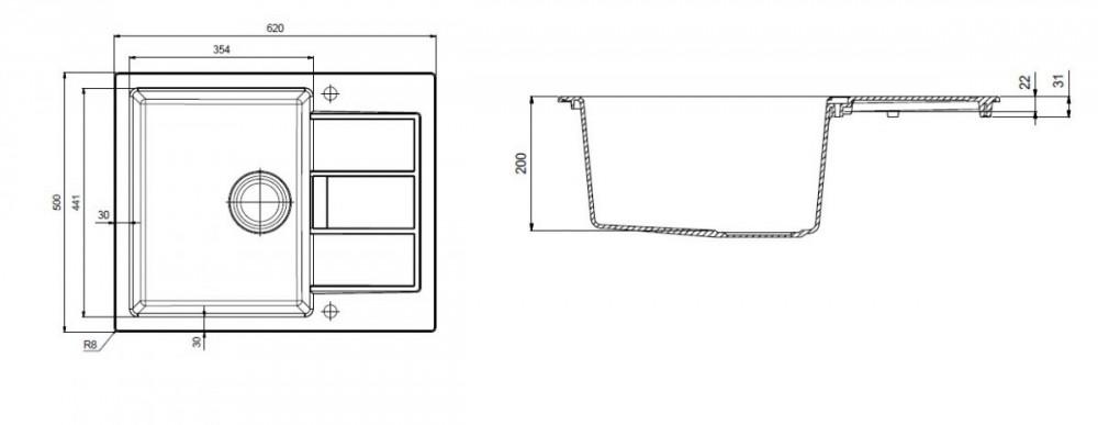 Размеры мойки 620х500 мм