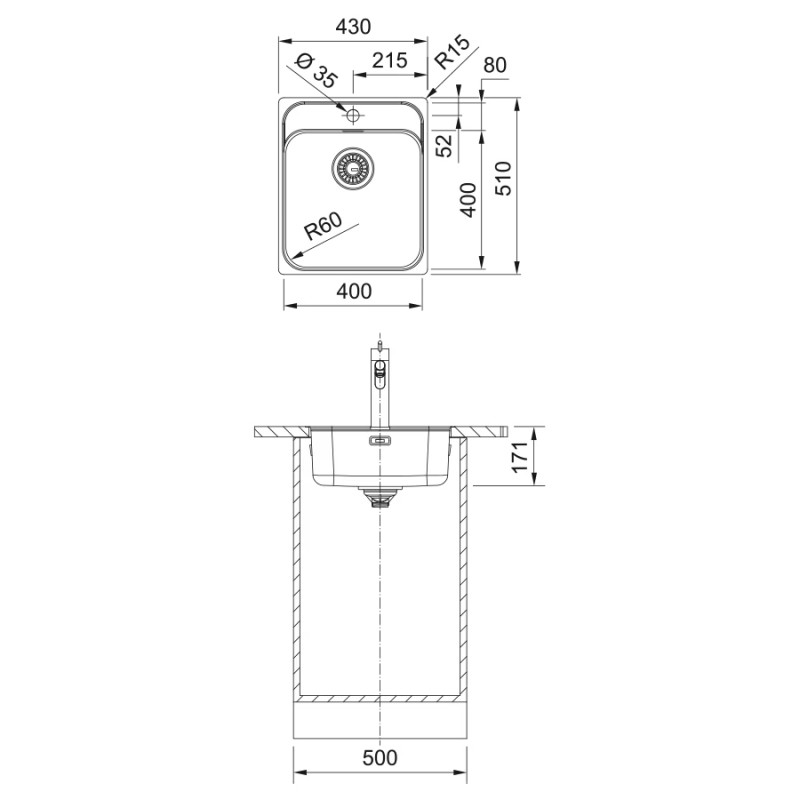 Мойка для кухни Franke Smart SRX 210-40 TL 43х51 см нержавеющая сталь полированная 127.0703.298