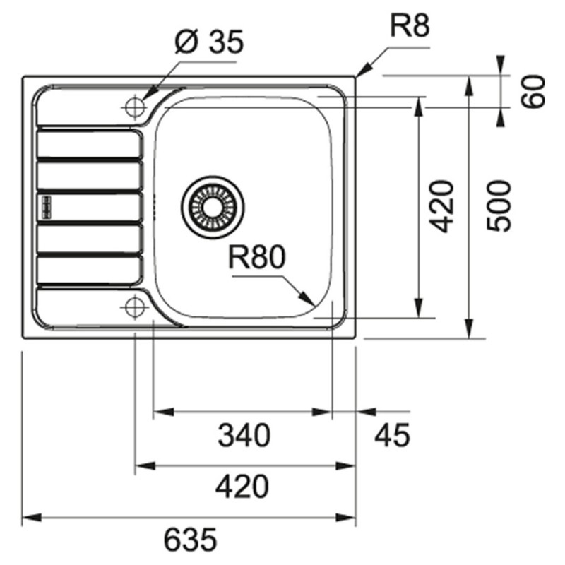 Размеры мойки 635х500 мм
