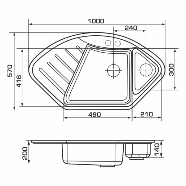 - Размеры мойки (ШхДхВ), мм: 1000х570х200