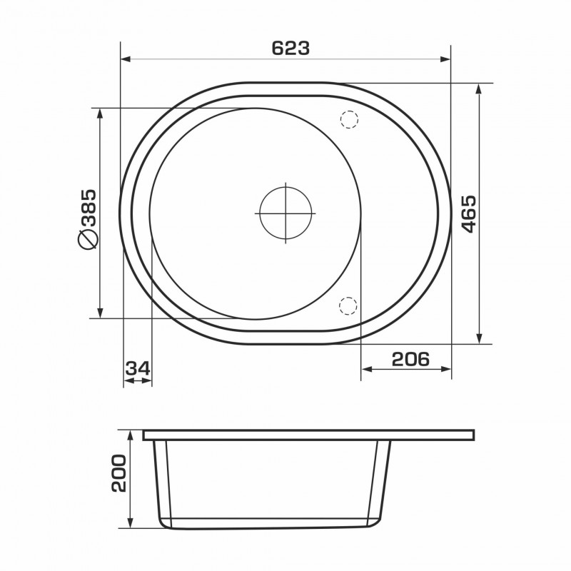 Размеры мойки (ШхДхВ), мм: 623х465х200