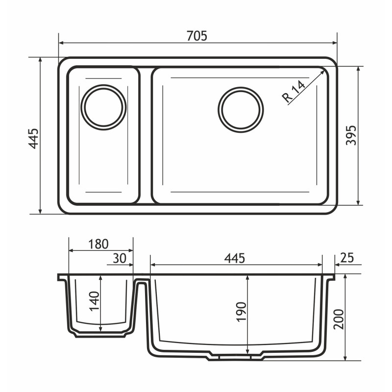 GRANADO Under top double – когда мечта об идеальной кухне становится реальностью. Кварцевая мойка, которая крепится под столешницу, имеет две чаши для максимального удобства.