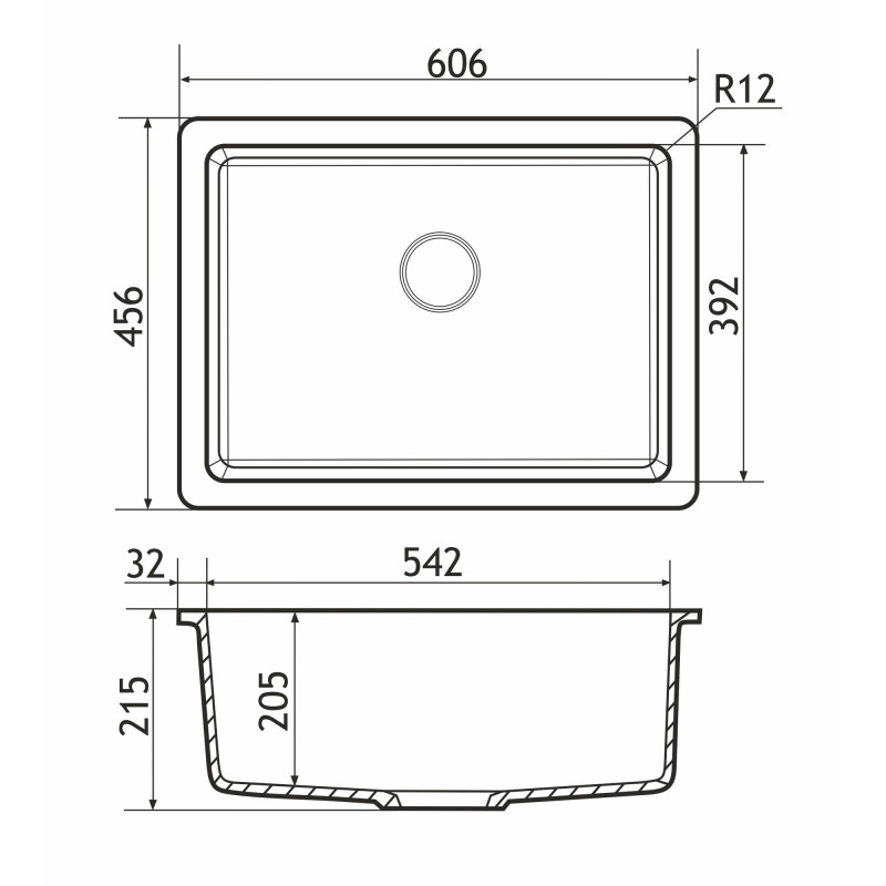 GRANADO Under top L – просто в яблочко, если вы ожидаете большего, чем обычная мойка на кухню. Вместительная чаша размером 542*392 мм подойдёт для большого количества продуктов или посуды. Да и просто можно быть уверенным, что брызги воды останутся в мойке.
