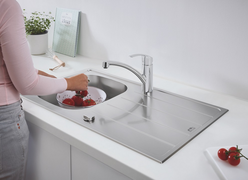 Для идеального сочетания с мойкой (31552SD1), в комплект входит однорычажный смеситель Grohe Eurosmart