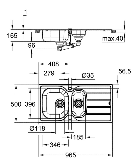1) Мойка для кухни Grohe K200 96,5х50 см нержавеющая сталь матовая